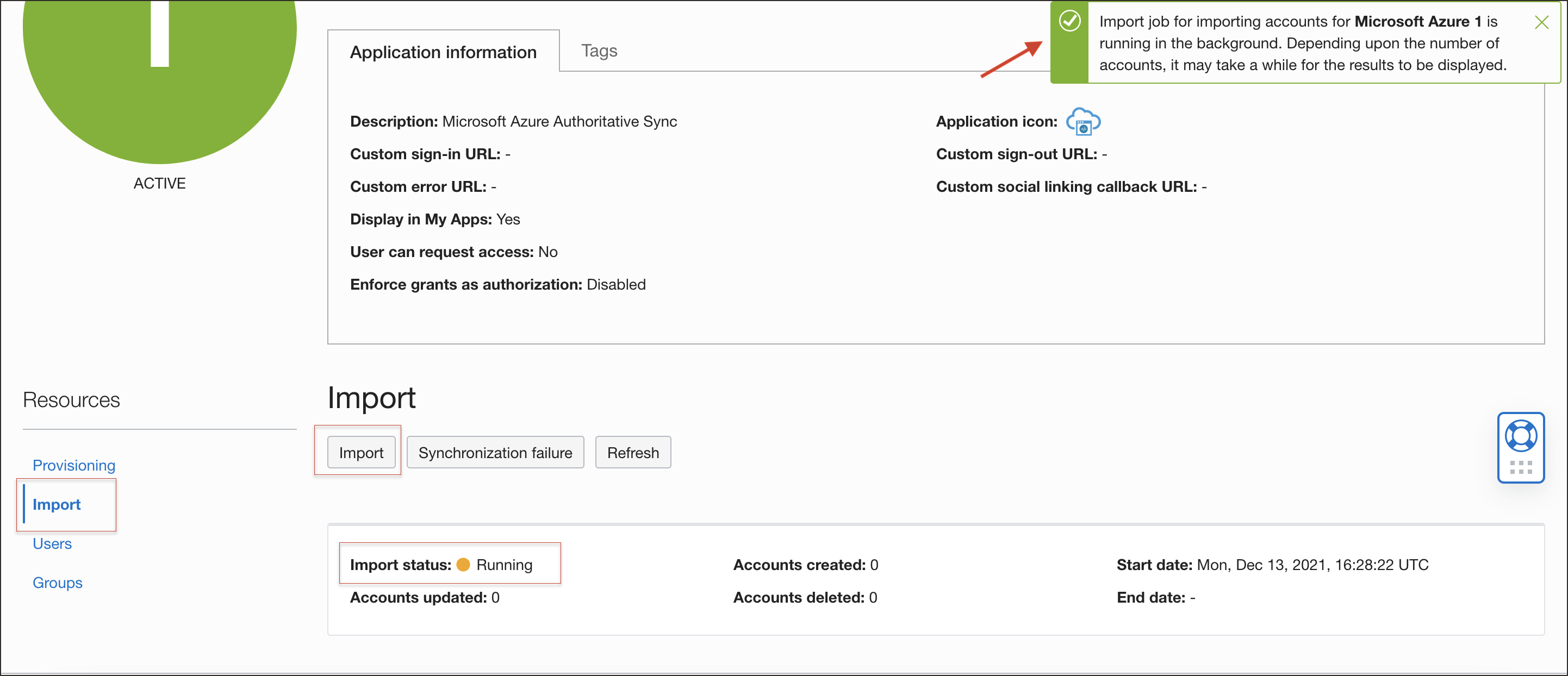 Microsoft Azureのアカウントをインポートするインポート・ジョブがバックグラウンドで実行されています。アカウントの数によっては、結果が表示されるまでしばらくかかる場合があります。